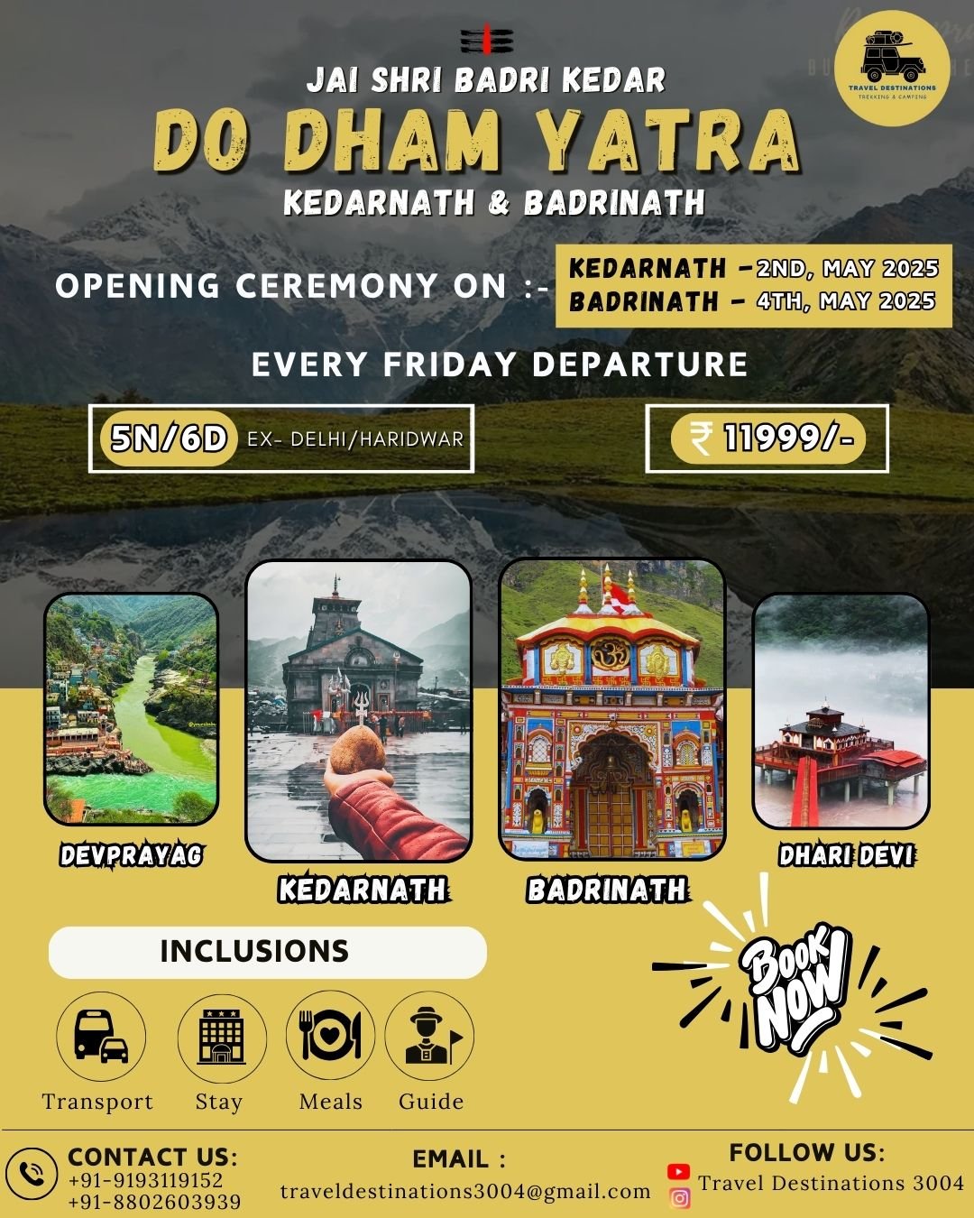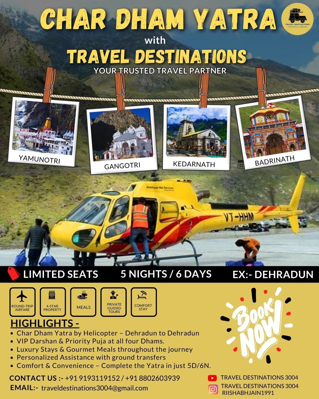 Welcome to Travel Destinations, a travel company founded by Rishabh Jain and Siddharth Jain, two brothers with a deep passion for exploring India’s sacred and spiritual landscapes. Over the past five years, we have extensively traveled through Char Dham and Panch Kedar, experiencing firsthand the challenges that many pilgrims and travelers face. Inspired by our journey, we started this company to simplify and enhance the travel experience, ensuring that others can embark on these sacred journeys with ease, comfort, and deeper understanding.